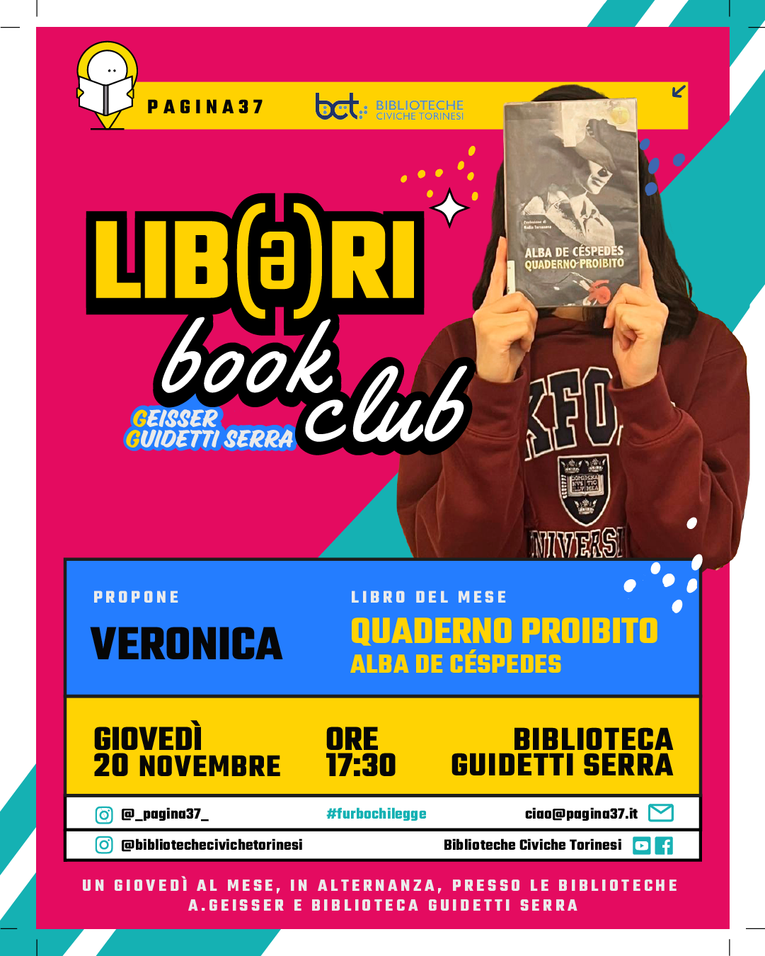 Questa volta ci troviamo alla Biblioteca Guidetti Serra per parlare di “Quaderno proibito” di Alba de Céspedes: uscito originariamente a puntate su una rivista e poi in volume nel 1952, é un libro che fa ancora vibrare domande attualissime su identità, ruoli familiari e sociali.
